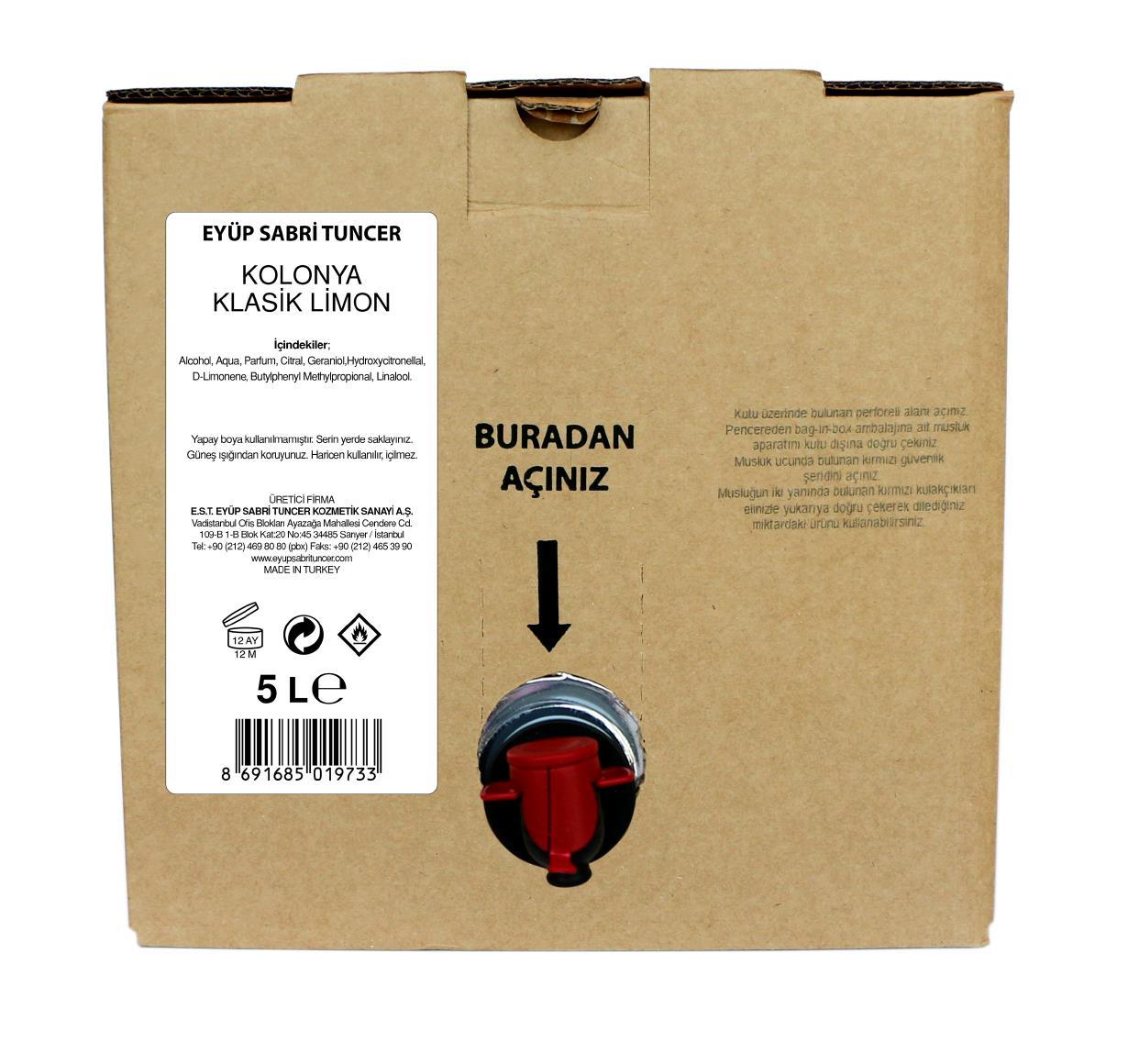 Eyüp Sabri Tuncer'in 5 litrelik bu ekonomik boyutu, özellikle yoğun kolonya tüketen aileler ve işletmeler için mükemmel bir çözüm. Geleneksel limon kokusunun ferahlığını büyük boyutta sunan bu ürün, hijyen ihtiyacını uygun maliyetle karşılıyor. %80 alkol içeriği sayesinde pandemi dönemlerinde de güvenle kullanılabilir. Restoran, kuaför gibi müşteri trafiği yüksek işletmelerin yanı sıra kalabalık ailelerin de tercih edebileceği bu kolonya, Eyüp Sabri Tuncer'in klasik lezzetini büyük boyutta sunuyor. Limon kolonyasının vazgeçilmez ferahlığını uygun fiyat/performans oranıyla almak isteyenlere özellikle tavsiye ederim.