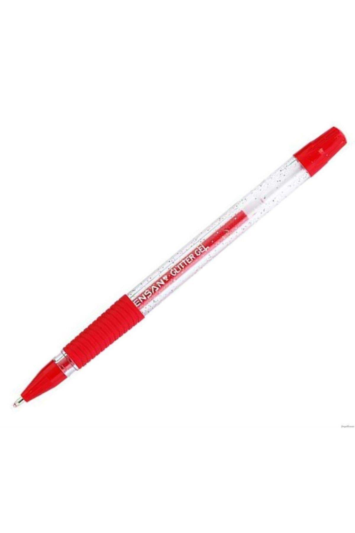 Pensan Kırmızı Simli Jel Tükenmez Kalem Jel Simli 1.0 MM Kırmızı (12 Li Paket)